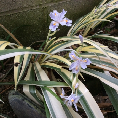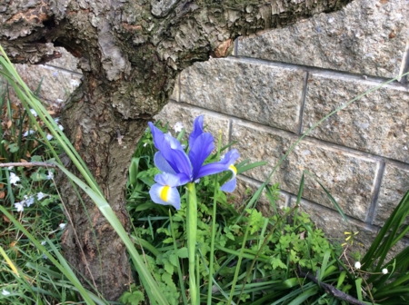 梅の木の足下でオランダアヤメが咲きました。