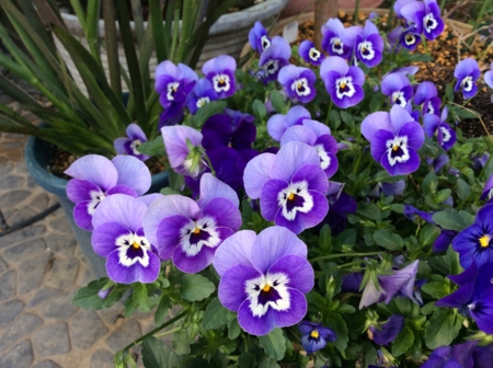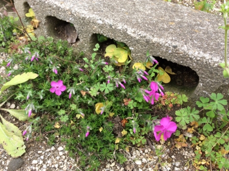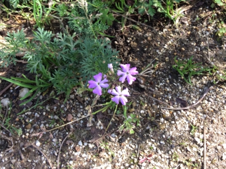 車止めのブロックの際に植えているシバザクラも開花。