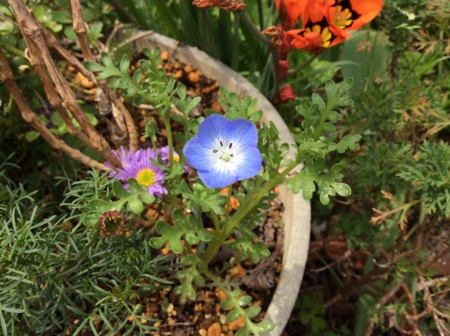 去年のこぼれ種から育ったネモフィラが