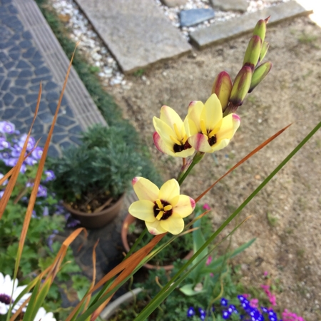 竹ひごのような細い花茎を長く伸ばして咲きます。