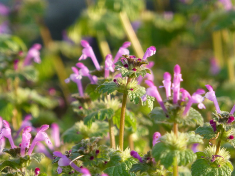 手前は白だけど、向こうの方のは赤というほど赤くもなく薄紫できれい。うちの庭のはもっと色が濃い。