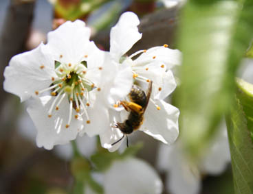 ハチさん、ハチさん、花粉だらけになってますよ。