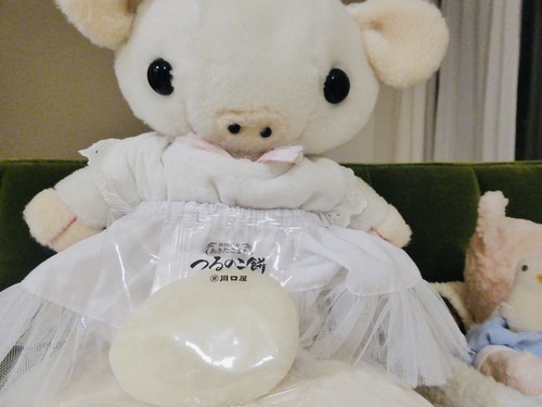 雨夫さんはとにかく白くて味気ないものが好きなので「つるのこ餅(白)」を召し上がりました。原材料は「うるち米、砂糖、酵素、乳化剤」。要するに砂糖がはいった餅です。