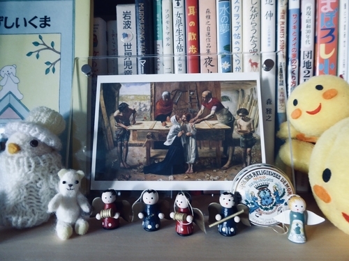 おはようございます。ついに年賀状に手をつけはじめました。雨夫さんはうちのプリンターに触るのが年に一度なので、このわがままボディに慣れることができません。このプリンターは見つめていないとだめなやつなのです。写真は「クリスマスが終わってぼんやりするみなさん」です。サンタさんは赤ワインとパンと花をくれました。